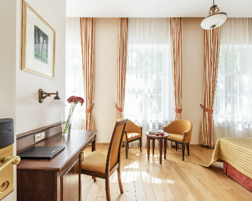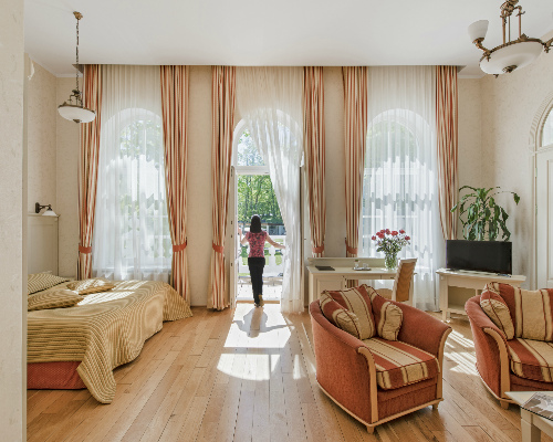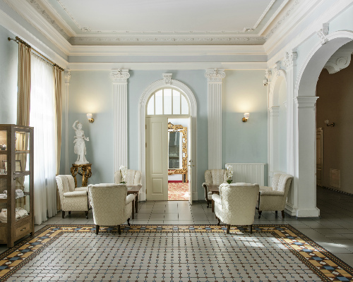 Отель Europa Royale расположен в одном из самых красивых уголков курорта. Это историческое здание бывшей лечебницы российского императора, которое реконструирован под современную гостиницу. Она расположена в самом центре курорта Друскининкай, на берегу живописной реки Неман, напротив поющего фонтана, кругом – живописная парковая зона. Один из крупнейших медицинских центров. Очень сильная лечебная база. Собственный источник минеральной воды – отлично влияет на состояние кожи.