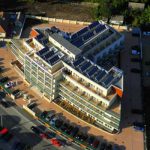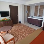 Напротив отеля расположилось здание аквапарка Aqua Palace и озеро с лодками. Отель состоит из 7 этажей общей площадью 8 000 м2. Целое здание обеспечено системой кондиционирования, в каждом номере отопление и охлаждение настраивается индивидуально.